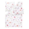 Aluna... bringt die Schönheit einer blühenden Sommerwiese direkt in dein Schlafzimmer. Auf dem strahlend weißen Hintergrund entfalten sich zarte Blumen in Rosa, Violett und Gelb, begleitet von filigranem Blattwerk.