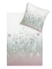 Flowery... das Set besticht durch einen zarten Farbverlauf von Rosa zu Blaugrau bis Weiß. On top tritt ein frühlingshafter Wald- und Wiesenaufdruck leise aus den kuschelweichen Maschen hervor.